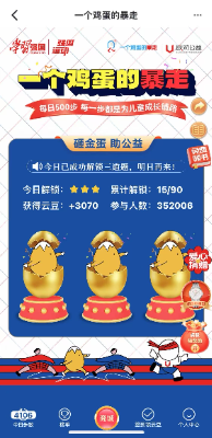 金蛋碎裂的清脆声响,传递着爱与希望的回音。强国运动“一个鸡蛋的暴走”活动将传统“砸金蛋”游戏与公益帮扶紧密结合,参与者通过运动积累步数获取砸虚拟“金蛋”机会,每砸开一枚金蛋,受助儿童的生活故事、艺术画作通过图文生动呈现。活动页面还有专属爱心捐赠通道,可为处境不利的儿童捐赠善款,这些设计以“小游戏”承载“大情怀”,让公益行动变得更加触手可及。