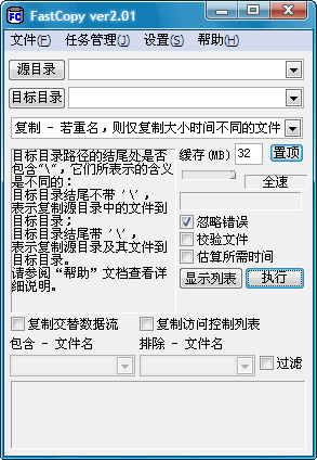第一种,如 Nullsoftcopy 一样先选择来源目录,然后选择目标目录,点[执行]按钮后即可开始拷贝;