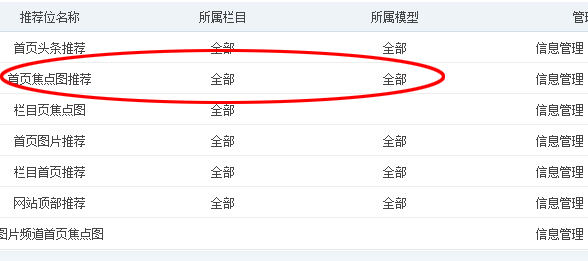 2、找到“内容 -> 推荐位管理”,找到“首页焦点图推荐”;