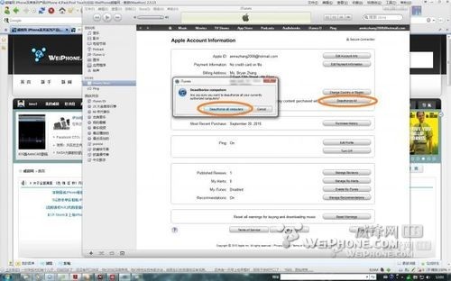 第三步,iTunes会连接服务器,显示该帐号目前的信息,注意看圈出位置,表示目前该帐号5个授权已经全部用完