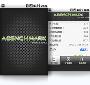 超级兔子系统评测一键运行完整测试项目,通过“内存性能”、“CPU整数性能”,“CPU浮点性能”、“2D、3D绘图性能”、“数据库IO”、“SD卡读、写速度” 8项性能测试对手机的硬件性能做一个整体评分。