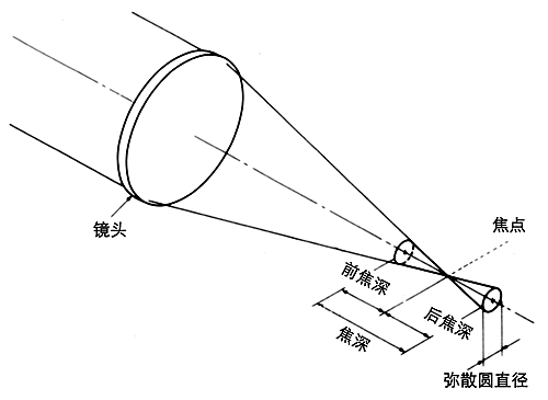 从焦点到近处容许弥散圆的的距离叫前景深,从焦点到远方容许弥散圆的距离叫后景深。