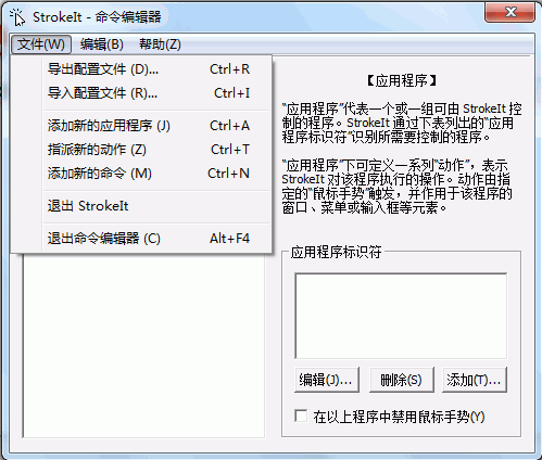 打开StrokeIt后,它会最小化到系统托盘,按照常规的操作,要想退出,当然是在图标上点击右键,待菜单出现后,再选择退出。而对于StrokeIt,这就不适用了,因为用右键点击StrokeIt,并没有右键菜单,而是禁用手势(图标会变红),因此,如果要退出,需要单击 StrokeIt图标,打开软件后,点击文件(File) –> 关闭StrokeIt(Shutdown StrokeIt),即可退出。