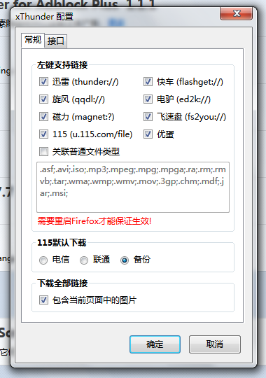 4)安装了Flashgot的用户,请取消Thunder作为默认下载,否则迅雷右键菜单会被它隐藏掉。