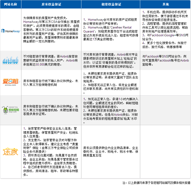 用户体验:从房东权益保证、租客权益保证等进行比较服务体验。