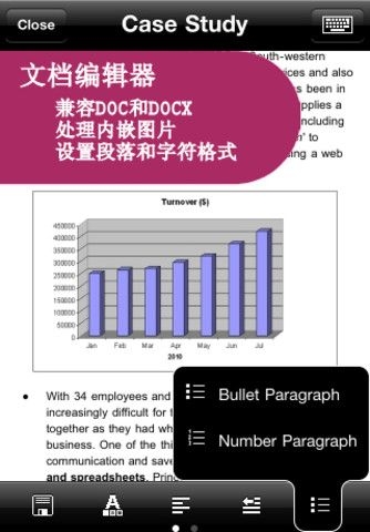 ● 支持图像,包括插入来自相机胶卷的图像,或从其他程序粘贴。