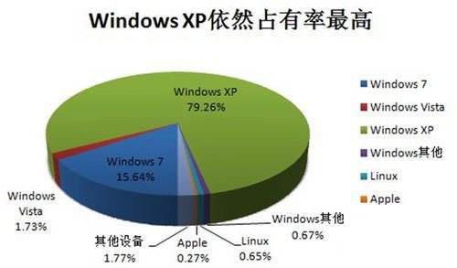 你不会认为一个11岁的Windows XP操作系统,将会成为Windows 8一个很大的挑战者,但这将成为事实。根据2012年7月NetMarketShare 的调查,42.86%的台式机仍运行Windows XP,比Windows 7 所占的42.21%的份额还多一点点。 从2011年9月的9.09%到2012年7月的6.60%,Windows Vista稳步下降,这是一个史诗般的失败。