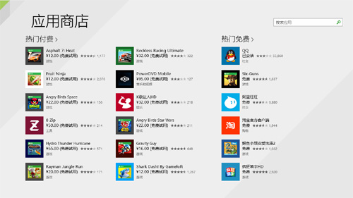在桌面环境下,Windows的软件安装使用和传统Windows 7一样,当然除了作为电脑使用,这个笔记本还能变身平板,它使用可插拔式设计,核心硬件全部集成在屏幕里,将其从键盘底座上拔下来就可当作平板使用,微软应用商店提供了丰富的为触控设计的应用,在Modern UI触屏界面下,安装软件需要进入Windows应用商店来安装,系统默认的是中国版Windows应用商店,不过笔者建议用户尝试选择一下美国应用商店。