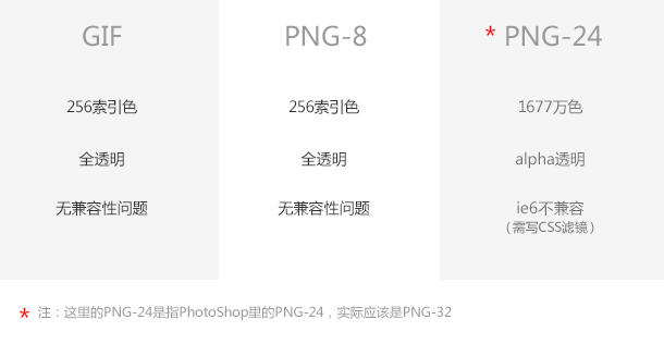 各种图片格式对透明的支持程度以及浏览器兼容性见下表