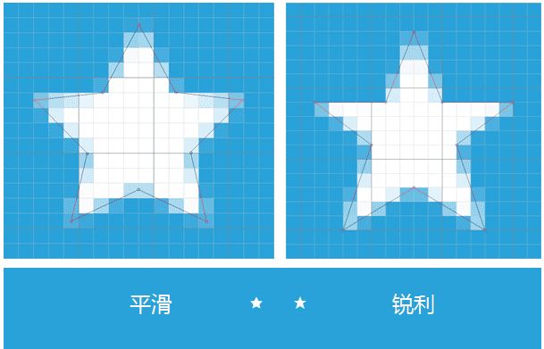 左边五角星需要平滑、饱满的效果,并没有对齐像素,但是不能说他比对齐像素的五角星差。