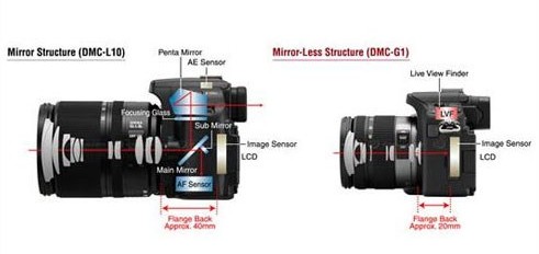 因为有反光镜,所以镜头不可能贴近焦平面,这会造成镜头后组设计非常困难。尤其是广角镜头设计,因为反光板影响不能设计大后组镜片组,所以成像与体积的轻巧化都受到了严重影响。此外因为有反光镜的存在,相机是很难设计得便携,所以纵观单反相机,可以说没有一款小巧的。