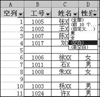 Cico提示:如果某记录的被筛选字段(如“性别”)所对应的单元格没有填写数据也会被筛选出来,此时可再对其他字段进行筛选,直到筛选出来的记录全为空行为止。