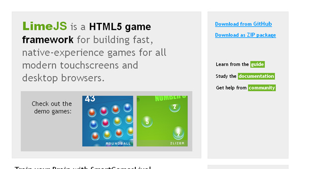 LimeJS 是个 HTML5 游戏框架,使用它来制作能在桌面浏览器中快速运行的游戏,适用于所有主流的浏览器和触摸屏设备。LimeJS 包括各种函数和类,用来管理事件,时间线,形状和动画。