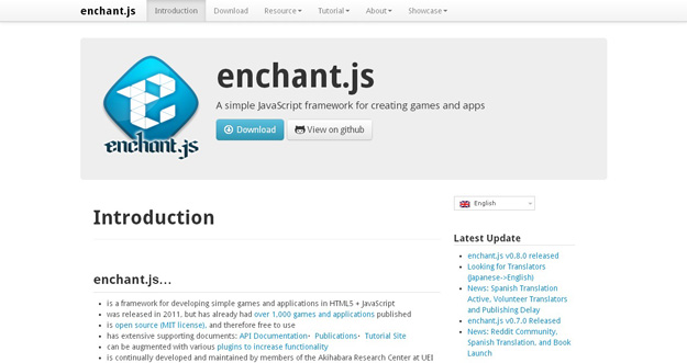 enchant.js 是个游戏引擎,同时也是个制作简单游戏和 HTML5 和 JavaScript 应用的框架。Enchant.js 发布于 2011 年,是个开源和免费的游戏引擎。