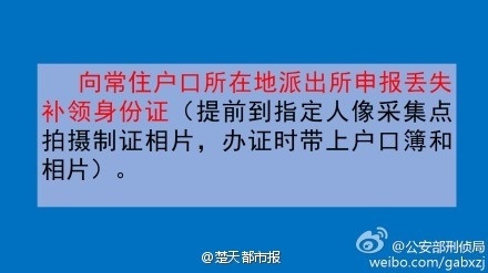 ⑤向常住户口所在地派出所申报丢失补领身份证;