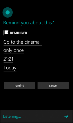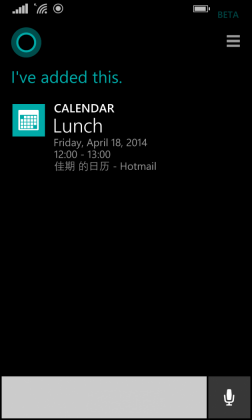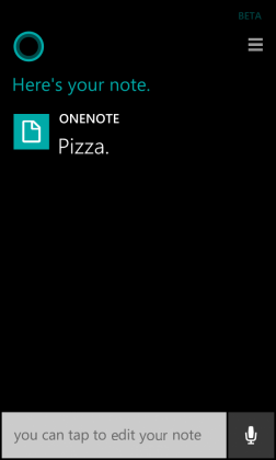 除此之外,用户也能直接从语音的第一步告诉cortana并记录笔记内容,如:“Take a note:pizza.”或者“Note:I must get up at 5:30 AM.”等等。
