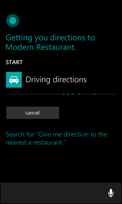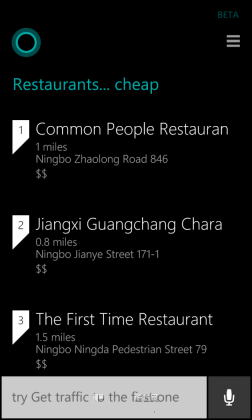 cortana会突出“便宜”,除了“便宜”还可以说“给我到距离这里最近的饭店的路”,cortana会自动获取最近的一家饭店信息并直接启动导航软件,导航默认启动的软件可以在设置—应用程序—地图页面下找到。