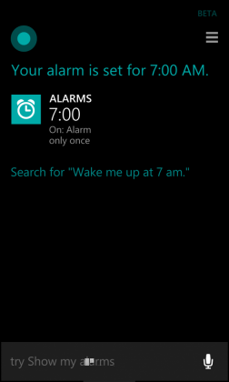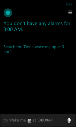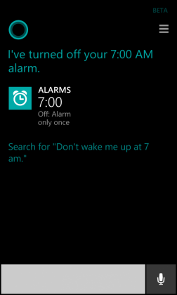 如果当你说要关掉的某个点的闹钟,但是这个闹钟没有在手机上建立的话,cortana也会提醒你没有这个闹钟。