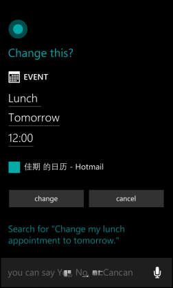 说:“The day after tomorrow.”—— “后天吧。”然后cortana会重复上述的确认提示。
