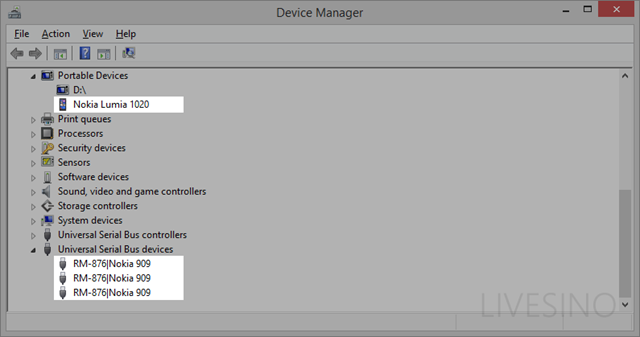 - 找到移动设备(Portable Deivces)和 USB 设备(Universal Serial Bus devices)中所有和 Lumia 有关的项,右键点击删除