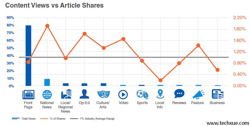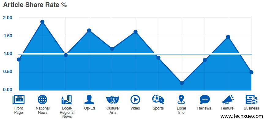 文章分享率介于1~2%之间,国内新闻,社论,视频等分享率较高