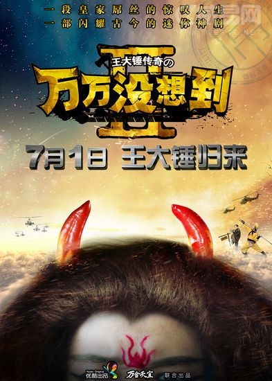 从先后曝光的4张让人“万万没想到”的海报来看,第二季人物形象多变,造型惊艳,尽显皇家屌丝的气质与风采,同时在第二季中各个角色也更加多样化和丰富,据透露,本季中,从人物到剧集都完全颠覆想象,真正的万万没想到。除了易烊千玺外,出品方优酷监制还透露更有一大波神秘明星在逼近。正片将于7月1日正式上线。第二季共15集,那易烊千玺会出现在哪一集呢?他会在叫兽的剧中与大锤擦出什么样的火花呢?大家留足口水调动好神经,待到7月1日《万万没想到》第二季优酷正式上线的时候再大爆发吧!