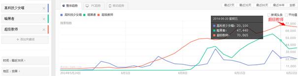 早有危机意识的视频网站一直在耕耘自家的网络自制剧,力争生产出具有优势的精品视频内容。以目前爱奇艺、腾讯视频、乐视网三家暑期档热播的自制剧来看,乐视网的《超级教师》、爱奇艺的《高科技少女喵》,腾讯的《暗黑者》均走精品路线,并凭借网络剧的题材开放性吸引了不少网友的眼球。再从三片的数据对比来看,乐视的《超级教师》在播放量和百度搜索指数方面更胜一筹,这正得益于乐视自制一直以来领先于行业的发展速度。