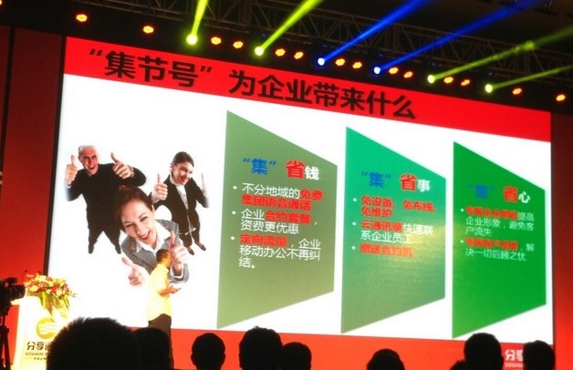 分享通信坚持走差异化路线,注重在细分市场精耕细作。“集节号“产品的推出就是其差异化路线的真正落地,该产品面向集客市场推出,为集团客户提供功能强大、价格实惠的融合通信和移动办公服务平台。分享通信执行总裁康志斌在阐述品牌过程中提出企业移动总机的概念,“移动总机免设备、免布线、免维护,全国拨打、接听无长途漫游,为企业省钱,省心。我们也了解企业,能够为他们提供需要的服务。”针对企业用户,分享通信还推出了超值资费套餐。
