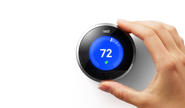 nest并没有使用一块方形触摸屏应付了事,而是将界面与操作融合在圆形屏幕之中,整个屏幕周围可以转动,并且随着转动屏幕中显示变化的数字或选项,按下屏幕则是“确定”,整个界面围绕“圆形”堪称典范。