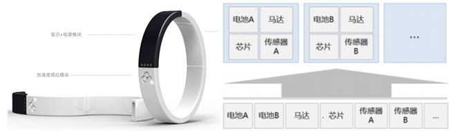 百度云UE设计团队将模块化应用于智能手环的设计中,采用模块化处理,分离部件,封装在不同模块中,如芯片、电池、马达、各种传感器等,并配有规范的接口,厂商和用户可以根据需求自由组合,提供多样化服务,需要提升手环的电池续航能力的用户,可以多装一个电池环段;平常生活工作只需要记录卡路里消耗的环段,而运动健身时则可以把这个环段拆下来换成监测心率的环段。这样,不仅智能手环的功能可以得到拓展,对手环用户来说也是成本上的节约。