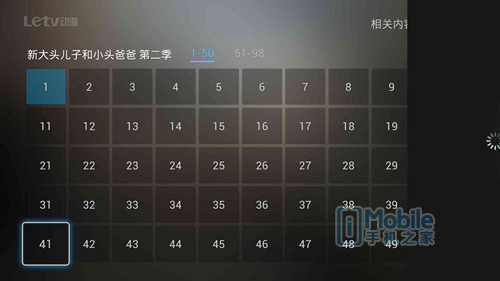 接下来就是动画项目。业内统计数据表明,家庭用户购买网络电视是为了解决影音节目内容上的灵活性和丰富性难点。其中,丰富的动画资源也是一大吸引之处。笔者以当下较为火爆的新版《大头儿子小头爸爸》为例,发现该节目在乐视网TV版中集数更新较为及时,已提供了近100集的内容,画质表现的清晰度也尚可。