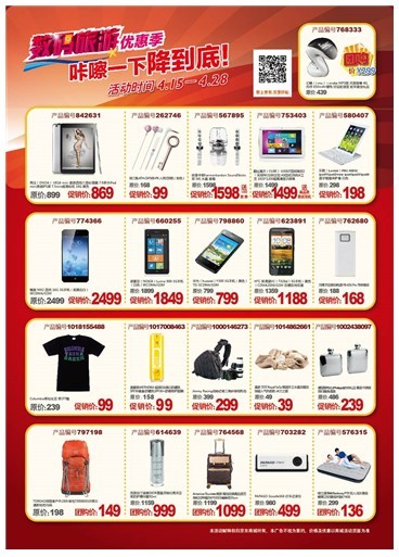 - 版本二:传单正面是买50送50的优惠信息,二维码是去到应用市场;反面是传统的超优惠爆款陈列。