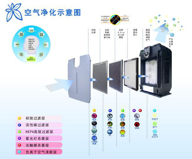 空气净化器又称“空气清洁器”、空气清新机,是指能够吸附、分解或转化各种空气污染物(一般包括粉尘、花粉、异味、甲醛之类的装修污染、细菌、过敏原等),有效提高空气清洁度的 产品,空气净化器是用来净化室内空气的小型家电产品,主要解决由于装修或者其他原因导致的室内空气污染问题。