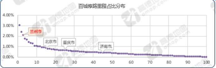 兰州的地型竖起来像个沙漏,东西两侧大则中间处狭窄,这造成两个区域贯穿和关联度较弱,大部分车辆过度汇集,形成拥堵瓶颈点。此外,兰州从2016年的二季度开始至三季度,市区修路里程占比均超过2%,全国排名第三;同时,修路里程占比是10大堵城中最大的。研究团队认为,大范围的修路,影响到周边道路通行现状,从而会加重城市拥堵。