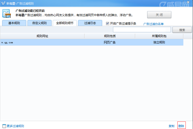 选中其中所有有关v.qq.com或qq.com的规则,点击“删除”。