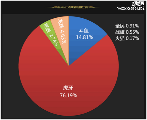 与此同时,王者荣耀的主播开播数量也在持续增长中。虎牙直播也占尽主播总量的近77%,惊人的数据显示出虎牙直播的恐怖级实力。