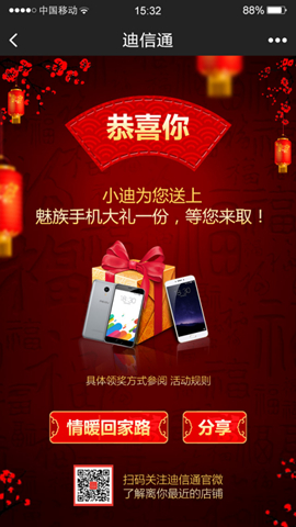 据悉,迪信通2017年“春节返乡关爱活动”包括“门店签到有礼”、“幸福照亮回家路”、“幸福倒计时-迪信通福历”等几大板块,活动期间,迪信通携手魅族手机还为大家准备了超级过年大礼包。此次活动将在全国各省市的多家门店同时开展,作为国内规模最大的手机连锁销售企业,迪信通迅速行动,借助线下多家实体门店优势,充分发挥迪信通“极致服务”的精神,为返乡人员提供多项免费服务,如提供休息场所为返乡游子遮风避寒、解决热水以及食品等供应、提供免费WIFI、医药箱等,不仅可帮助返乡游子缓解路途劳顿和寒冷,更能有效保障其出行安全。