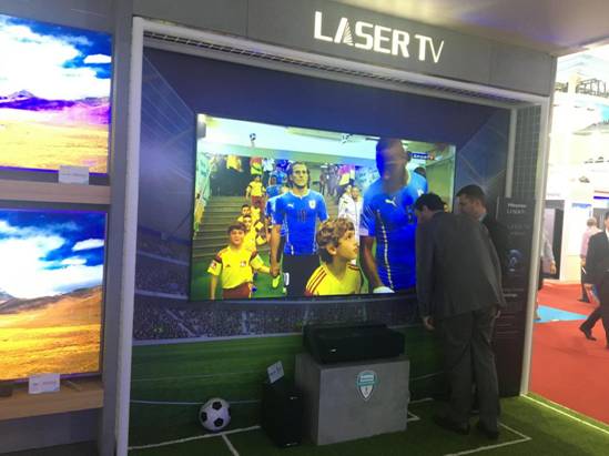 赞助2016年欧洲杯之后,又迅速成为2018年俄罗斯世界杯官方赞助商的海信,近来在国际上知名度激增。记者在现场看到,海信展台的中外厂商络绎不绝,充分挖掘利用了世界杯相关元素的双色4K激光电视展区,更是挤满了外国客商。记者看到,不少外商一开始还以为这是超大屏液晶电视,即便走上前用手遮挡住激光束确认是激光电视后,不少外商还是难以置信,又走到最前面几乎是“零距离”观察屏幕,或走到最侧面,换个刁钻的角度观察是否还是如此清晰,然后朝海信工作人员咨询相关信息。