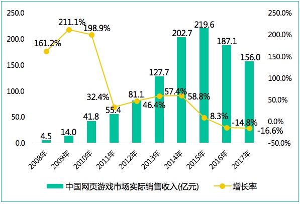 报告显示,今年中国网页游戏市场实际销售收入达到156.0亿元,同比下降16.6%,收入连续两年出现负增长。