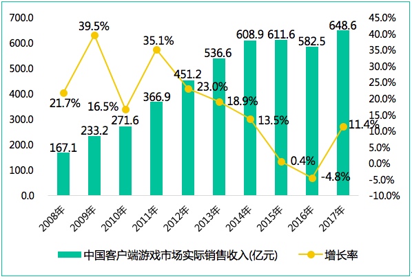 今年客户端游戏的收入情况也出现了一定的回暖迹象。报告显示,中国客户端游戏市场实际销售收入达到648.6亿元,同比增长11.4%。