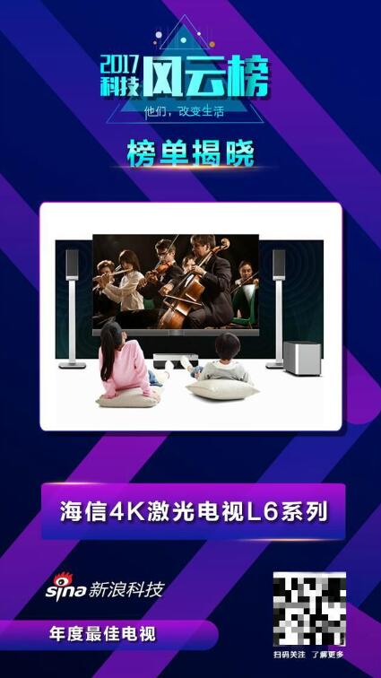 海信4K激光电视L6系列获科技风云榜年度最佳电视奖