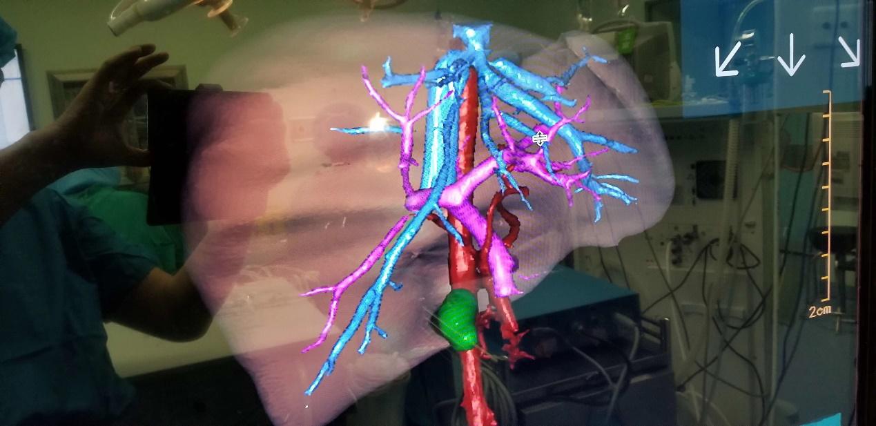 原来,相比其他人体器官,肝脏内血管遍布、错综交织,而儿童肝脏相较成人更小,手术难度也成倍上升。长久以来,CT只能为手术医生提供二维图像,医生只能凭经验自己在脑中构建肝脏、血管及肿瘤的立体图像,增加了手术的难度。能否借助计算机等智能系统,建立清晰的三维立体图像,制定精准手术方案?2013年,海信集团和青大附院共同研发的“海信CAS计算机辅助手术系统”让董蒨的精准医疗梦梦想成真。