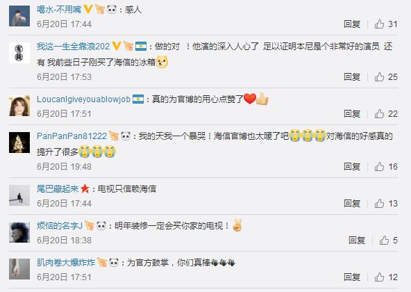 海信这一调整消息发出后,收获大量网友点赞。截至21日中午12:00,该条微博获得3100余次转发,3000余次点赞。一些网友在评论中写道:“这样的官博太可爱了,感动到哭”“为海信鼓掌,你们真棒”“用心了,感谢。”