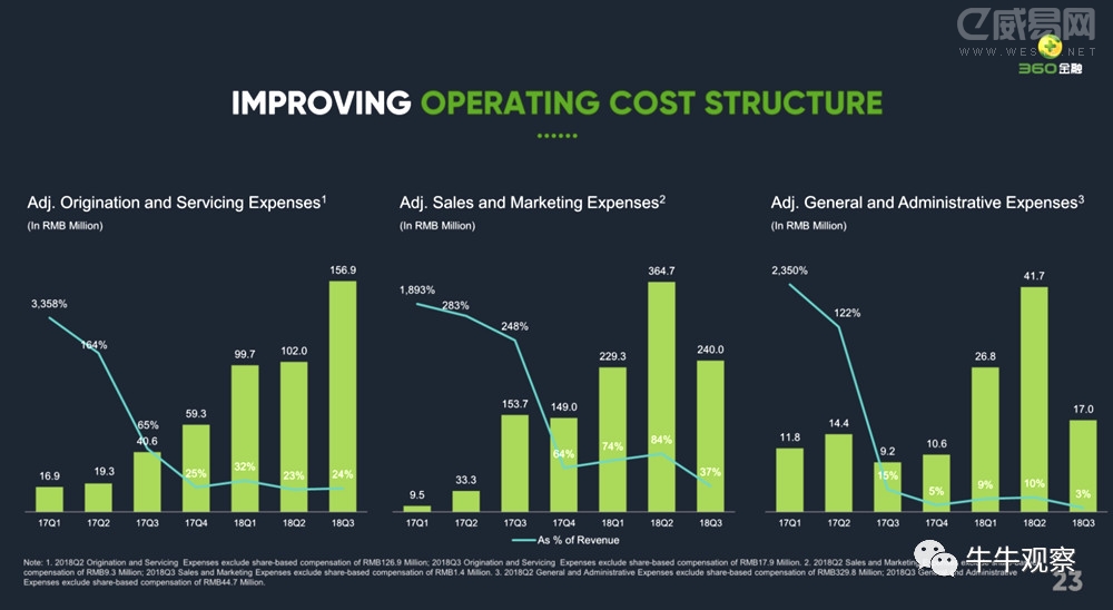 根据招股书,360金融依靠自身平台所吸引的借贷者,只占总渠道比例的8%;360手机卫士等360集团渠道占比23%。剩余的69%则由腾讯应用宝、百度、搜狗搜索等渠道瓜分。这也是为何360金融营销费用居高不下的主要原因之一。