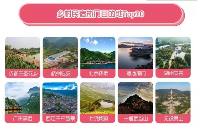 2018年,乡村民宿成为热点话题,党中央国务院发布的《关于实施乡村振兴战略的意见》提出,“实施休闲农业和乡村旅游精品工程,建设一批设施完备、功能多样的乡村民宿,发展乡村共享经济,助力乡村振兴”。《国家乡村振兴战略规划(2018-2022年)》也提出将民宿作为促进乡村经济增长、旅游扶贫的重要抓手。小猪平台的乡村民宿订单量在2018年也保持高速增长。数据显示,目前小猪短租乡村民宿房源已突破5万套,成都三圣花乡、杭州临安、北京怀柔、琼海潭门、湖州安吉、广东清远、西江千户苗寨、上饶婺源、十堰武当山、无锡灵山成平台乡村民宿新热门目的地。