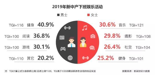 而女性职场地位的提升也为“她经济”的出现创造了思想基础,即消费意愿。韭菜财经数据显示,女性新中产下班后的娱乐活动主要有音乐、摄影、社交、健身等。根据马斯诺人类生存需求金字塔定律,女性是因为职场地位的提升满足了女性的基本需求,因而产生新的消费意愿,才为“她经济”创造思想基础。
