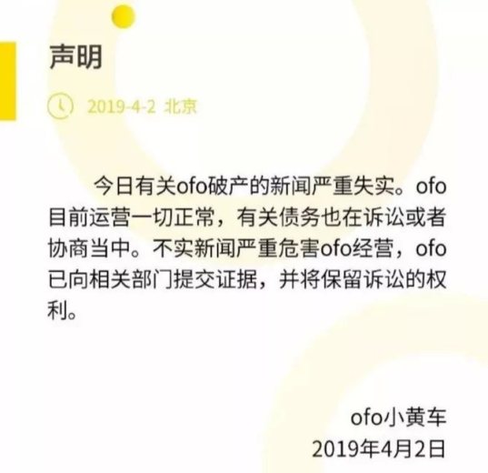 2018年底,“ofo开始准备破产重组”的消息将ofo推上风口浪尖,超过1000万用户挤兑押金,资金缺口超过10亿,法院对ofo作出限制消费令,一时间ofo陷入了负面舆论的漩涡中。