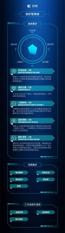 从素质、性格和价值观三个层面出发,组织管理者的画像呈现如下: