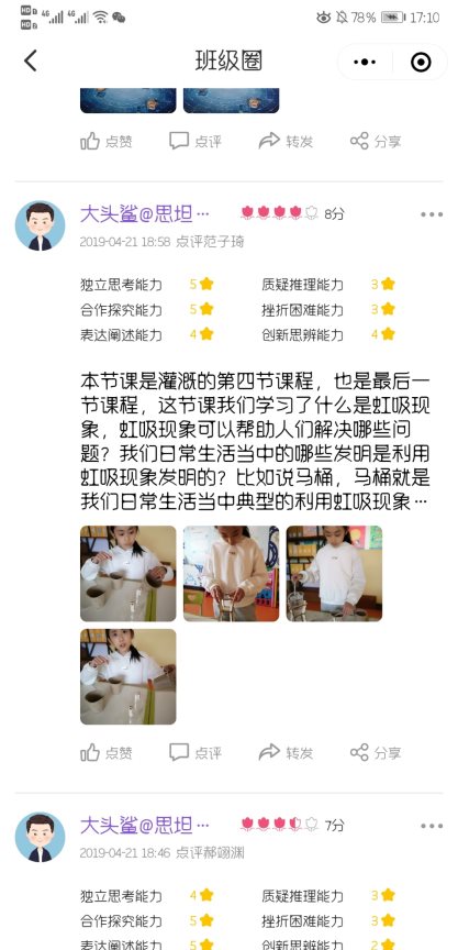 同时,思坦福儿童科学院的老师可以对学员进行自定义的图文、音频、视频点评,并且快速生成精彩的课堂记录故事图片。老师分享故事图片给家长,家长可以直接分享转发朋友圈。
