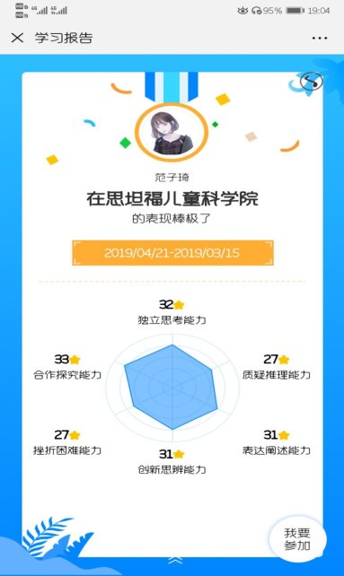如何让家长看得见孩子的课堂表现呢?鲸相册通过独特的点评模型记录孩子的课程时光,比如思坦福儿童科学院的老师可以从独立思考能力、合作探究能力、表达阐述能力、质疑推理能力、挫折困难能力以及创新思辨能力6个维度点评学员的课堂表现,让家长全面、直观了解孩子,也增加了家长对思坦福儿童科学院的信任。